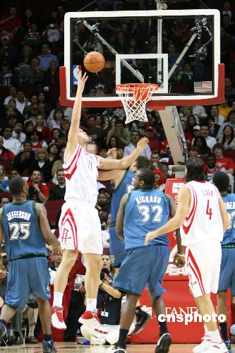 圖:NBA常規(guī)賽火箭主場大勝森林狼