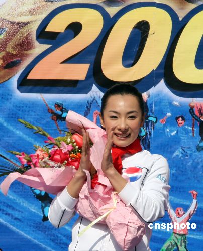 1月20日上午,中國(guó)體操世界冠軍劉璇在廣東惠州市帶領(lǐng)上萬(wàn)市民歡呼齊跳“愛(ài)中國(guó),中國(guó)隊(duì)加油!”集體舞。由惠州鵝城攝影學(xué)會(huì)主辦的“2008舞動(dòng)大拇指,最?lèi)?ài)中國(guó)年”攝影大賽同時(shí)開(kāi)始,劉璇親自按動(dòng)相機(jī)快門(mén),主持?jǐn)z影大賽開(kāi)鏡儀式,并為惠州人民題寫(xiě)新年祝詞。中新社發(fā) 宋秀杰 攝