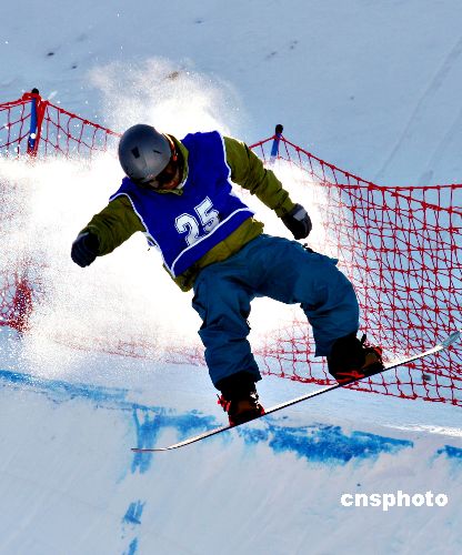 1月20日,全國第十一屆冬季運(yùn)動(dòng)會(huì)單板滑雪U型場地團(tuán)體賽總決賽在亞布力進(jìn)行。經(jīng)過角逐,女子團(tuán)體冠軍由哈爾濱一隊(duì)劉佳宇、潘雷、蔡雪桐陳、陳旭獲得,成績分別為34.6、31.2、30.1、28.8男子團(tuán)體冠軍由解放軍隊(duì)黃世英、曾小燁、于洪智、岳嶺獲得。成績分別為39.3、37.5、31.4、28.9、二三名分別被:(女)長春隊(duì)、解放軍隊(duì)(男)撫順市一隊(duì)、哈爾濱市一隊(duì)獲得。中新社發(fā) 姚庭山 攝