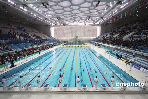 2月1日上午,“好運北京”中國游泳公開賽在國家游泳館(水立方)按照北京奧運會比賽時間表舉行六個項目的決賽。中新社發(fā) 任晨鳴 攝