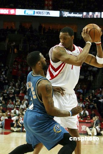 當?shù)貢r間2月26日晚,失去姚明的休斯敦火箭隊“化悲痛為力量”,坐鎮(zhèn)主場以94-69橫掃奇才拿下13連勝。麥迪在姚明缺陣的情況下帶領全隊全面開花。中新社發(fā) 楊晉升 攝
