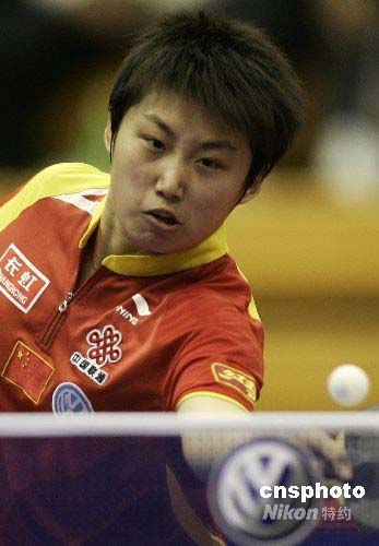 5月17日,在長(zhǎng)春舉行的中國(guó)乒乓球公開(kāi)賽女子團(tuán)體決賽中,中國(guó)隊(duì)以3比0的總比分戰(zhàn)勝韓國(guó)隊(duì),獲得冠軍。圖為郭躍在比賽中以3比2戰(zhàn)勝韓國(guó)DANG YE SEO。中新社發(fā) 杜洋 攝