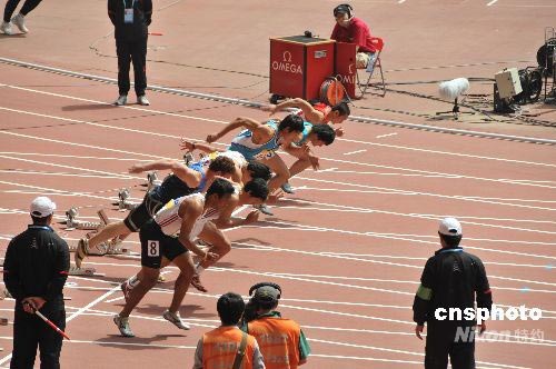 “好運北京”2008年全國田徑錦標賽暨中國田徑公開賽,自5月22日至25日在國家體育場“鳥巢”舉行,22日上午九點比賽開始前,全體觀眾、運動員、工作人員起立,向四川地震遇難同胞默哀;今天上午進行的項目有:女子七項全能100米欄、男子F/55/56/57/58標槍決賽、女子100米欄預賽 、男子跳遠及格賽A/B、 男子1500米預賽 、女子七項全能跳高A/B 、男子鉛球及格賽 A/B、 女子1500米預賽、 男子400米預賽、女子400米預賽等。中新社發(fā) 馮軍(北京) 攝