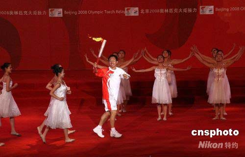 圖:揚州市最后一棒火炬手抵達傳遞終點