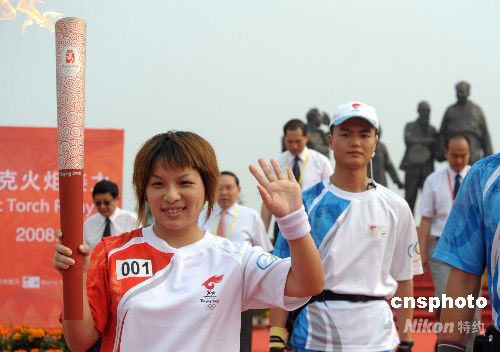6月5日,奧運(yùn)圣火開始湖南湘潭、韶山傳遞,舉重奧運(yùn)冠軍楊霞傳遞首棒火炬。