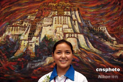 6月20日,西藏大學(xué)教師達(dá)娃央宗出席聯(lián)想火炬手發(fā)布會。21日,她將在拉薩傳遞北京奧運(yùn)火炬。她14歲時(shí),在神秘而古樸的青藏高原點(diǎn)燃了1990年北京亞運(yùn)會的第一縷圣火。2004年的雅典奧運(yùn)會時(shí),28歲的達(dá)娃央宗也曾擔(dān)任火炬手。 中新社發(fā) 廖攀 攝