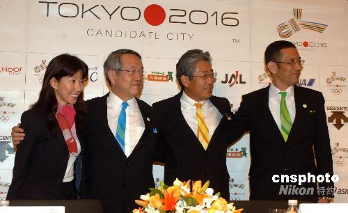 8月4日,東京2016年奧運(yùn)會(huì)申辦委員會(huì)在北京舉辦東京申辦2016年奧運(yùn)會(huì)新聞發(fā)布會(huì)。圖為日本奧林匹克委員會(huì)主席、東京2016年奧運(yùn)會(huì)申辦委員會(huì)副主席竹田恒和(右三)、東京2016年奧運(yùn)會(huì)申辦委員會(huì)主席兼首席執(zhí)行官河野一朗(右二)、東京都政府申辦推廣部執(zhí)行總監(jiān)中村年長(右一)、東京2016年奧運(yùn)會(huì)申辦委員會(huì)國際宣傳部總監(jiān)仲川美穗子(左一)在會(huì)上合影。中新社發(fā) 鄒憲 攝