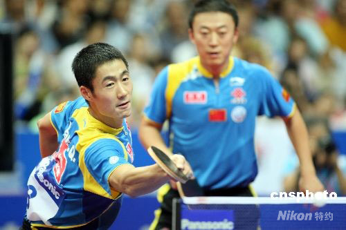 9月14日,2008年國(guó)際乒聯(lián)職業(yè)巡回賽中國(guó)乒乓球公開(kāi)賽在上海舉行,中國(guó)選手王勵(lì)勤(左)與馬琳在男子雙打決賽中,以4:3戰(zhàn)勝隊(duì)友王皓與陳玘獲得冠軍。中新社發(fā) 湯彥俊 攝