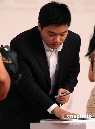 9月28日,2008年斯諾克上海大師賽揭幕,中國斯諾克領(lǐng)軍人物之一的丁俊暉低調(diào)面對賽事,沉穩(wěn)地留下“明星手印”。將于29日開打的本次大賽,共云集世界排名前16的斯諾克高手、16位資格賽選手,以及7位中國外卡選手同場競技。中新社發(fā) 潘索菲 攝