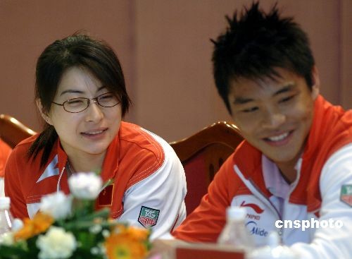 10月17日晚,中國跳水隊教練員及北京奧運跳水冠軍在福州為參加2008年361°全國跳水錦標賽的運動員作報告。中新社發(fā) 王東明 攝