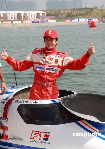 2008年10月26日,明星賽車(chē)手林志穎在深圳F1摩托艇永久賽場(chǎng)宣布,正式加盟中國(guó)天榮F1摩托艇招商銀行隊(duì),同時(shí)他還下水進(jìn)行了雙人摩托艇的體驗(yàn)活動(dòng)。中新社發(fā) 涂 傲 攝