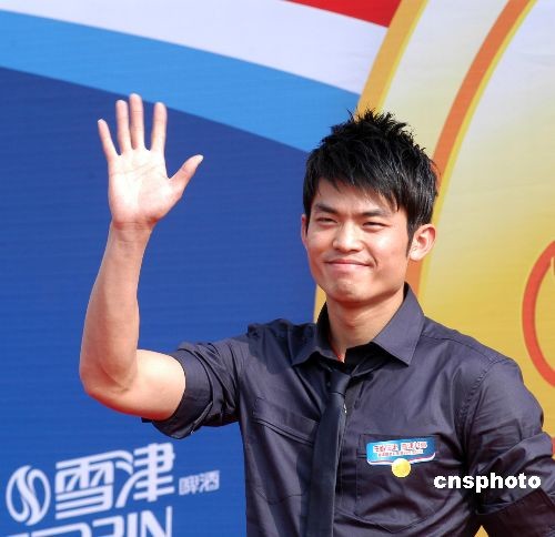 2008年10月26日,林丹回家了!頭頂北京奧運會羽毛球男單冠軍的榮耀,這位中國體壇人氣偶像一身時尚打扮亮相福州,與廣大“丹迷”親密接觸。中新社發(fā) 張 斌 攝