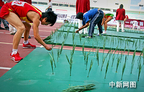 圖:農(nóng)運(yùn)會插秧比賽技巧多