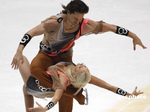 11月8日,2008中國杯世界花樣滑冰大獎賽繼續(xù)在北京首都體育館舉行。在結(jié)束的冰舞比賽中,俄羅斯選手多姆尼娜/沙巴林奪得冠軍。中新社發(fā) 盛佳鵬 攝