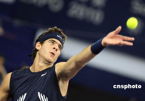 11月11日,在上海旗忠網(wǎng)球中心進行的上海大師杯金組單打比賽中,本屆最年輕的大師、阿根廷的德爾-波特羅以2比0力克法國的“阿里”特松加,取得在大師杯中的首場勝利。中新社發(fā) 湯彥俊 攝