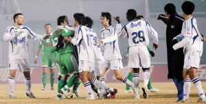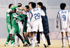 在昨晚的“京津?qū)υ挕敝校鲌?chǎng)作戰(zhàn)的北京國(guó)安隊(duì)2比2戰(zhàn)平天津泰達(dá)隊(duì),雙方各得1分。在比賽的最后階段,濃重的火藥味和兩度群體沖突也給這場(chǎng)比賽帶來了不和諧音。比賽即將結(jié)束時(shí),郭輝和天津隊(duì)譚望嵩之間發(fā)生了肢體接觸。據(jù)郭輝本人透露,當(dāng)時(shí)譚望嵩試圖對(duì)他飛鏟,在被郭輝躲開后,譚望嵩破口大罵。更不和諧的一幕發(fā)生在賽后,天津隊(duì)球員走下場(chǎng)時(shí),以隊(duì)長(zhǎng)曹陽(yáng)為首,高舉雙手向看臺(tái)上的北京球迷豎起了中指。記者親眼看到,直到走進(jìn)球員通道,曹陽(yáng)才將高舉的雙臂放下。(記者 周蕭)