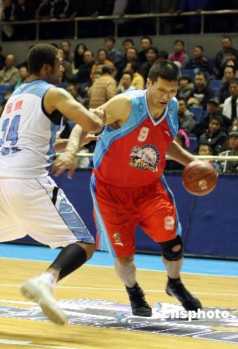 11月16日晚,新賽季CBA聯(lián)賽進(jìn)行首輪爭奪,北京金隅坐鎮(zhèn)首鋼籃球中心對陣新疆廣匯,整場比賽爭奪激烈,比分交替領(lǐng)先,第四節(jié)結(jié)束前北京金隅領(lǐng)先三分,新疆隊(duì)?wèi){借外援邁龍.艾倫的一個(gè)壓哨三分球追平比分進(jìn)入加時(shí),北京金隅氣勢大受打擊,最終以97:101輸?shù)羰讉(gè)主場比賽。新疆隊(duì)雙外援胡安和艾倫發(fā)揮超常,兩人總共得到81分。中新社發(fā) 王韶驊 攝