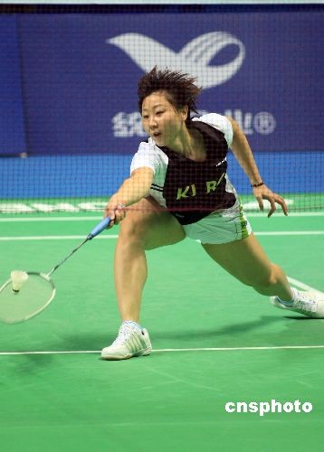 11月20日,2008年中國羽毛球公開賽繼續(xù)在上海進行,在下午進行的女子單打比賽中,中國香港選手周蜜以2比1戰(zhàn)勝泰國選手薩拉吉特,晉級八強。中新社發(fā) 湯彥俊 攝