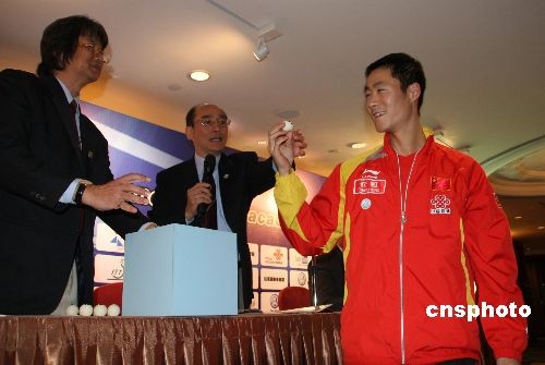 由大眾汽車(chē)冠名贊助的國(guó)際乒聯(lián)二〇〇八職業(yè)巡回總決賽將于十二月十一日至十四日在澳門(mén)舉行。圖為中國(guó)選手王勵(lì)勤十日在澳門(mén)參加抽簽儀式。中新社發(fā) 畢永光 攝