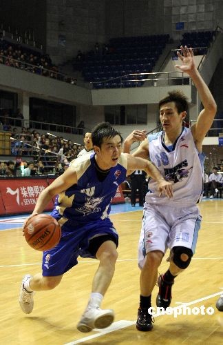 2月16日晚,CBA第35輪最后一場比賽中,北京金隅隊主場迎戰(zhàn)東莞馬可波羅隊,全場比賽東莞隊防守松懈,外援進攻乏力,而北京隊隊員積極主動,比分一直領(lǐng)先,最終以21分的優(yōu)勢戰(zhàn)勝對手,取得了進軍季后賽關(guān)鍵的一場勝利。中新社發(fā) 王韶驊 攝