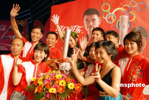 10月24日晚,海南“2008北京奧運(yùn)會(huì)火炬手頒獎(jiǎng)禮”在?谂e行。李平、譚麗林、凌萍、韓燕等10人當(dāng)選為可口可樂(lè)2008奧運(yùn)火炬手。據(jù)悉,經(jīng)北京奧組委審核后,這10名火炬手將正式成為北京奧運(yùn)會(huì)火炬手。超女冠軍李宇春現(xiàn)身現(xiàn)場(chǎng)演唱助興。據(jù)悉,海南是2008北京奧運(yùn)火炬?zhèn)鬟f首傳省。中新社發(fā) 善平 攝