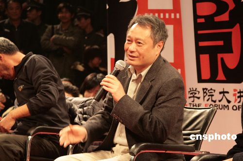 正在熱映的大片《色·戒》的導(dǎo)演李安12月25日做客北京電影學(xué)院,與同學(xué)們進(jìn)行學(xué)術(shù)交流活動。同時出席的還有著名導(dǎo)演田壯壯及電影學(xué)院院長張會軍。李安還獲得了“北京電影學(xué)院客座教授”榮譽(yù)稱號。中新社發(fā) 墮天 攝