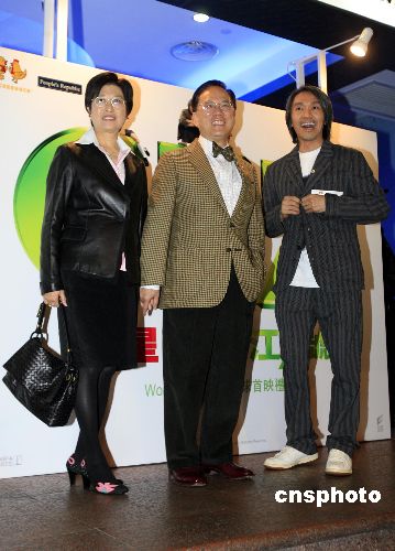 一月二十三日晚,周星馳身兼導(dǎo)演、編劇、演員,歷時(shí)三年打造的電影《長江七號(hào)》在香港舉行全球首映禮,百位政界、商界、演藝界嘉賓出席觀看。特首曾蔭權(quán)夫婦也出席首映禮,支持香港創(chuàng)意工業(yè)。中新社發(fā) 王麗南 攝