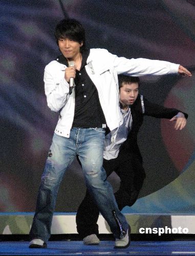 春節(jié)即將來臨,北京朝陽政法界2008《魅力朝陽 平安奧運(yùn)》大型春節(jié)慰問演出舉行。演出集演唱、小品、樂器演奏、雜技等綜藝性節(jié)目于一體,演員陣容強(qiáng)大,既有像羽泉、黃圣依、許茹蕓、沙寶亮、韓紅這樣的國內(nèi)演藝界知名藝人,又有警員自編自演的歌曲、小品。沙寶亮為北京警員高歌。中新社發(fā) 任海霞 攝