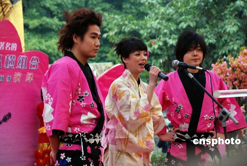 圖為日本著名偶像組合范姜明月@涉谷縱橫在櫻花節(jié)上表演。以“億萬(wàn)櫻花舞羊城”為主題的首屆廣州櫻花文化節(jié)2月4日至3月23日在廣州雕塑公園舉行。這是目前國(guó)內(nèi)規(guī)模最大、持續(xù)時(shí)間最長(zhǎng)、最具特色的櫻花文化節(jié)。屆時(shí),將有12000多棵櫻花在雕塑公園相繼綻放。為烘托節(jié)日氣氛,這次的櫻花主要以紅色、粉紅色為主。中新社發(fā) 袁宏偉 攝