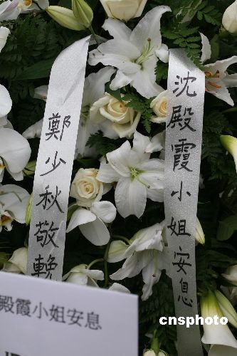 已故香港知名藝人沈殿霞于當(dāng)?shù)貢r間二十七日上午下葬在溫哥華地區(qū)本拿比科士蘭墓園,包括沈殿霞前夫鄭少秋、歌星張學(xué)友夫婦以及徐小鳳等都送了花圈,其中一個寫著“沈殿霞小姐安息,鄭少秋敬挽”字樣。中新社發(fā) 羅琦 攝