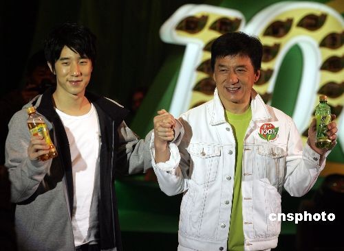 4月5日,國際巨星成龍攜子房祖名在上海代言某品牌茶飲料,上演了一出令人贊嘆的父子深情。成龍和房祖名也是首度為該品牌啟動父子合作。中新社發(fā) 潘索菲 攝