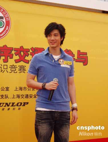 五月二十五日,作為交通安全志愿者的影視明星王力宏亮相“鄧祿普上海交通安全宣傳日活動”,他并將于下周趕赴四川地震災(zāi)區(qū),為抗震救災(zāi)盡自己的一份力。此前,王力宏已為災(zāi)區(qū)捐獻了三百萬元新臺幣。中新社發(fā) 姜煜 攝