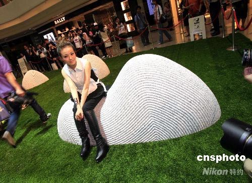 五月二十七日,臺(tái)灣藝術(shù)家洪東祿、黃致陽(yáng)藝術(shù)展在香港時(shí)代廣場(chǎng)舉行,香港歌星容祖兒被邀出席并在藝術(shù)家黃致陽(yáng)的“座千峰”雕塑前接受采訪(fǎng)。容祖兒介紹,明日就將與劉德華等數(shù)名藝人赴四川探訪(fǎng)地震災(zāi)民,給他們送去心靈的慰籍書(shū)藉。中新社發(fā) 王麗南 攝