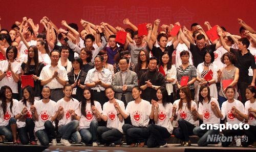 6月19日晚,由中國(guó)服裝設(shè)計(jì)師協(xié)會(huì)在北京舉辦的“人文奧運(yùn)”時(shí)尚成衣發(fā)布會(huì)暨“愛心·時(shí)尚”賑災(zāi)捐贈(zèng)會(huì)上,“中國(guó)模特愛心行動(dòng)”再掀一個(gè)高潮,中國(guó)內(nèi)地名模代表們通過現(xiàn)場(chǎng)宣誓,吹響“中國(guó)模特愛心行動(dòng)”全面啟動(dòng)的號(hào)角,“中國(guó)模特愛心行動(dòng)”將在今后定期或不定期的舉辦各種形式的宣傳活動(dòng)籌集善款,并全部用于資助災(zāi)區(qū)及其它貧困地區(qū)的兒童教育事業(yè)。中國(guó)扶貧基金會(huì)收到全額款項(xiàng)后,將根據(jù)中國(guó)服裝設(shè)計(jì)師協(xié)會(huì)職業(yè)時(shí)裝模特委員會(huì)的意愿,點(diǎn)對(duì)點(diǎn)落實(shí)為災(zāi)區(qū)小學(xué)建立圖書室、電腦房等。圖為中國(guó)時(shí)裝設(shè)計(jì)師、模特以及中國(guó)服裝業(yè)內(nèi)人士一起參加愛心行動(dòng)啟動(dòng)。中新社發(fā) 錢興強(qiáng) 攝