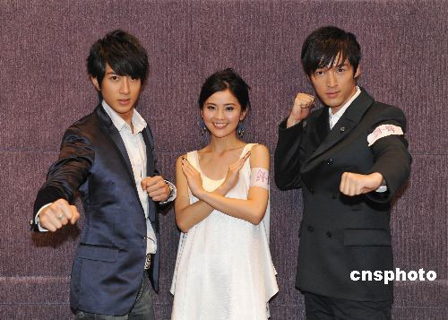10月9日,馬楚成最新功夫愛情巨制《劍蝶》上映在即,主演吳尊、阿Sa、胡歌以及武術指導程小東專程趕到北京,與導演馬楚成一同接受各大媒體專訪。初次亮相電影銀幕的吳尊與阿Sa首次攜手,馬楚成對他們的表現(xiàn)贊不絕口,更是給出了“前途無限”的評價。而《劍蝶》對胡歌也有著特殊的意義,這是他車禍受傷后首次出演的作品。據了解,《劍蝶》將于10月16日在全國上映。 中新社發(fā) 李學仕 攝
