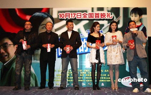 圖為主創(chuàng)人員合影。由范冰冰、杜汶澤領(lǐng)銜主演的,講述一位在職場取得成就的漂亮女主持人在一場大型直播秀中遇到的種種突發(fā)狀況,最終失去寶貴親情的主旋律實驗電影《回家的路》,10月17日在北京首都影城舉行首映式,導(dǎo)演方剛亮、主演范冰冰、杜汶澤等主創(chuàng)到場出席。這部帶有實驗性質(zhì)的電影采用現(xiàn)場直播秀的獨特形式,從側(cè)面反映現(xiàn)代女性在光鮮亮麗的職業(yè)外表之下隱藏的家庭與事業(yè)的艱難抉擇。中新社發(fā) 王昊 攝