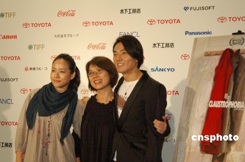 10月23日下午,中國(guó)香港電影《親密》主創(chuàng)人員在東京國(guó)際電影節(jié)主會(huì)場(chǎng)六本木召開記者見(jiàn)面會(huì)。圖為導(dǎo)演岸西攜男女主演鄭伊健、林嘉欣回答各國(guó)記者提問(wèn)后合影。中新社發(fā) 關(guān)妍 攝