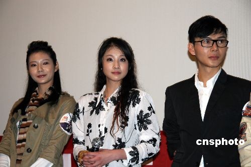 10月29日,海巖新劇《舞者》在長(zhǎng)沙舉行全國(guó)首播點(diǎn)映式,導(dǎo)演劉心剛攜劇中三位主演侶皓吉吉(右)、章齡之(中)和宋汶霏一齊亮相。其中,男主角侶皓吉吉以海巖兒子的身份而備受關(guān)注。中新社發(fā) 鄧霞 攝
