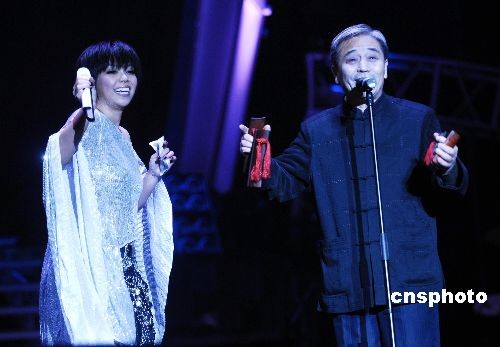 2008年10月29日晚,張惠妹2008世界巡演中國天津站演出在天津奧體中心舉行,當晚戶外氣溫不足10攝氏度,阿妹仍然一席輕薄勁裝登臺演唱,全場熒光飛舞歌迷叫好聲不斷。天津著名相聲表演藝術家馬三立先生長子馬志明以神秘嘉賓身份出現(xiàn),“少馬爺”以快板為阿妹伴奏,津腔津味、一唱一和演繹津版Rap,將演唱會推向高潮。中新社發(fā) 高中 攝