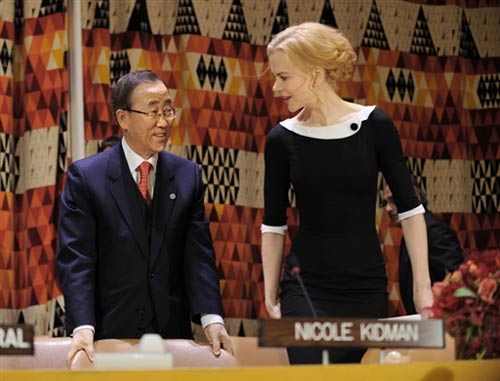 妮可亮相聯合國總部 潘基文為其扶座椅