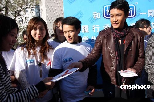 11月27日,知名藝人陸毅帶著一份防艾、抗艾的決心走進(jìn)北京中國人民大學(xué),為“大學(xué)生防艾志愿者聯(lián)盟”的成立助陣。2008年12月1日將迎來第二十一個“世界艾滋病日”。中新社發(fā) 王利 攝