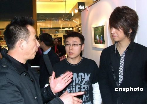 以“新鮮城市 綠色視界”為主題的環(huán)保攝影展12月15日在上海某商場舉行,“好男兒”宋曉波的兩件作品《風》和《蒲扇》,也參加了該攝影展。中新社發(fā) 井韋 攝