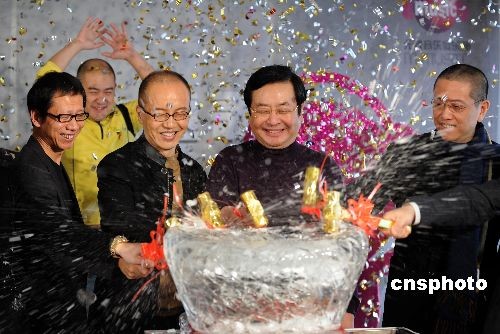 十二月二十七日,陳其鋼、曾慶淮、陳丹青等揮錘砸爛冰制鳥巢,取出《我和你》珍藏版專輯正式發(fā)布。陳其鋼是北京奧運(yùn)會(huì)開幕式音樂(lè)總設(shè)計(jì),北京奧運(yùn)會(huì)開幕式主題曲《我和你》的作者。中新社發(fā) 廖攀 攝