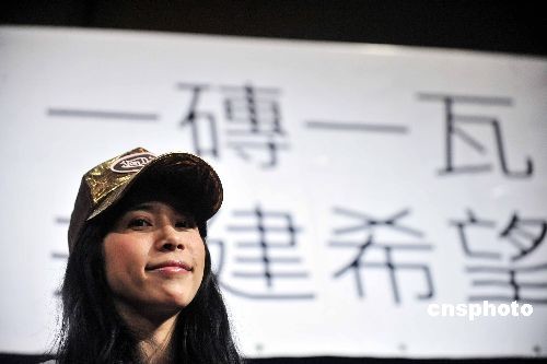 三月四日,香港歌手莫文蔚在仁人家園舉行的記者會(huì)上呼吁,賑災(zāi)除了捐錢(qián),年輕人還應(yīng)該捐時(shí)間和力氣。國(guó)際非牟利組織仁人家園當(dāng)天在港宣布,在全球招聘五百義工,幫助四川災(zāi)區(qū)七百個(gè)受災(zāi)家庭重建家園。中新社發(fā) 譚達(dá)明 攝