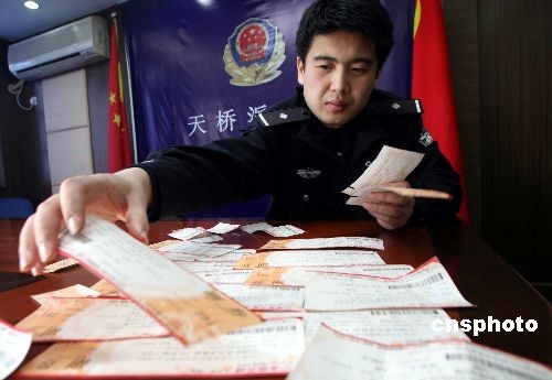 近日,北京宣武警方經(jīng)過前期取證后對天橋劇場周邊的倒票團伙實施抓捕,5分鐘抓捕11名嫌疑人。目前,嫌疑人全部被宣武警方治安拘留。中新社發(fā) 湯亮 攝