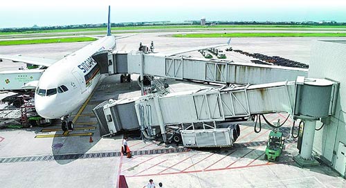 桃園機(jī)場(chǎng)空橋使用年限12年 不到6年突斷裂(圖)