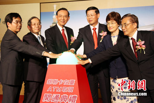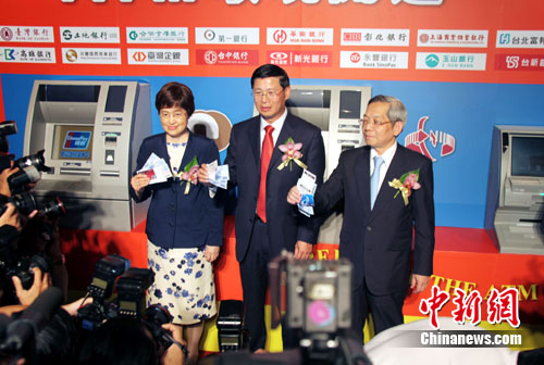 中新網(wǎng)臺北6月30日電(記者 黃少華)6月30日,中國銀聯(lián)、臺灣財金公司、臺灣銀行公會舉行記者會,宣布銀聯(lián)卡在臺ATM提領新臺幣、預借現(xiàn)金及余額查詢服務正式開通。
