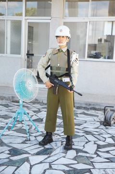 中新網(wǎng)7月1日電 據(jù)臺(tái)灣《聯(lián)合報(bào)》報(bào)道,“憲兵”站崗吹電風(fēng)扇?這幕顛覆傳統(tǒng)“憲兵”站崗的畫面出現(xiàn)在花蓮空軍基地,一名全副武裝的女大兵,身穿重達(dá)1.5公斤的防彈背心,制服密不透風(fēng),部隊(duì)長(zhǎng)官體諒她,炎炎夏日擔(dān)心她中暑,貼心提供風(fēng)扇為她消暑。