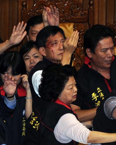 臺(tái)灣“立法院”昨天爆發(fā)肢體沖突,藍(lán)綠各有一名“立委”掛彩送醫(yī)。吳育升右臉遭計(jì)時(shí)器砸傷、縫八針,民進(jìn)黨“立委”郭玟成被人推落主席臺(tái),兩人都送往臺(tái)大醫(yī)院治療;臺(tái)“行政院長(zhǎng)”吳敦義、“立法院長(zhǎng)”王金平分別前往探視。
