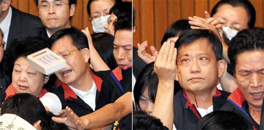 “真的很痛!”吳育升昨日臉上包著紗布,說明前天掛彩時(shí),只感覺到一陣刺痛,“當(dāng)時(shí)看到有東西丟過來,我雖然有閃,但仍砸到我!碑(dāng)下“立法院長”王金平就站在他左邊,“如果我蹲下轉(zhuǎn)開,是不是就砸到王‘院長’了?”